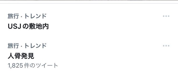 22 hours agoUSJ敷地内の植え込みに人骨か 頭蓋骨の可能性 従業員が発見. 速報 USJ 付近で人骨のようなもの見つかる USJクルーが発見し警察に通報 パトカーの止まっている所ですが 駐車場の入口付近です. 21 hours ago12日午後2時半ごろ大阪市此花区桜島にあるユニバーサルスタジオジャパンUSJの従業員から敷地の植栽内で人骨を発見したと大阪.